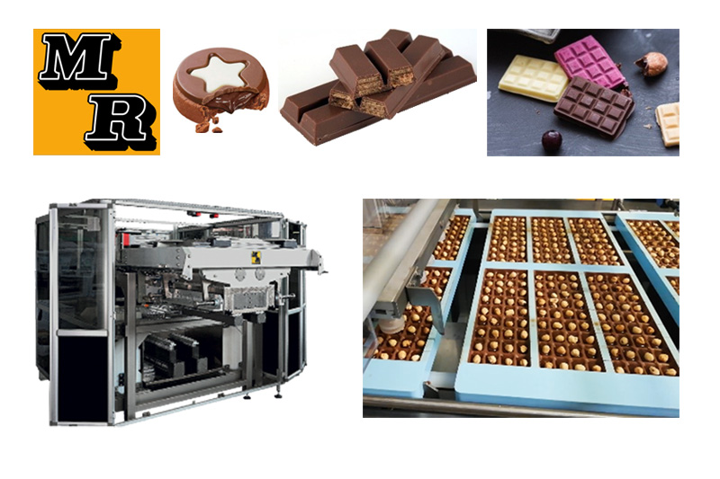 Découvrez les lignes de moulage industrielles de la gamme MAZ, offrant une capacité allant jusqu'à 3 000 kg/h pour la fabrication de tablettes et de bonbons en chocolat.