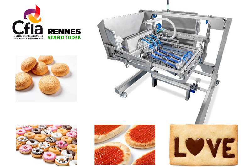 FoodJet, constructeur de machines de dosage, de garnissage et de décoration de produits alimentaires, a mis au point une technologie unique de buses pilotées permettant de doser les aliments liquides ou visqueux, avec précision, sur des supports de différents formats.