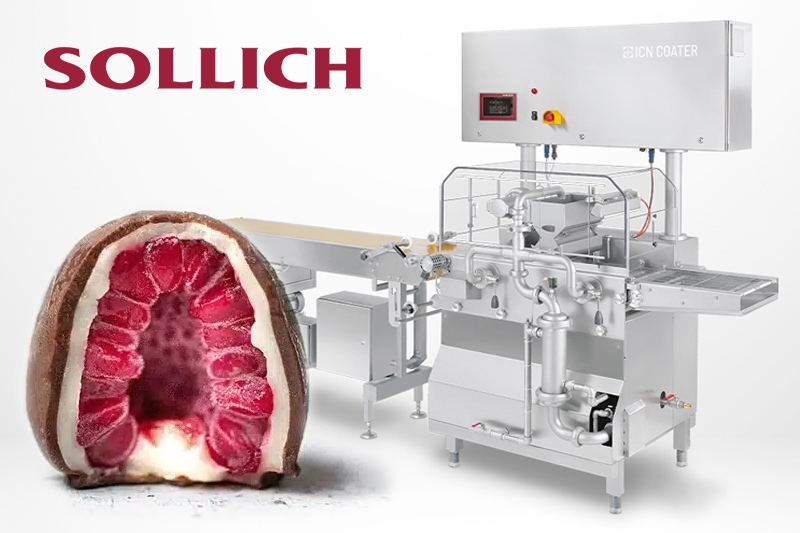 Fort de son expérience acquise sur l’enrobage des crèmes glacées, SOLLICH a développé et fourni avec succès aux Industriels outre-Atlantique des lignes complètes d’enrobage pour la production de fruits surgelés enrobés en s’appuyant sur la technologie de l’enrobeuse ICN :